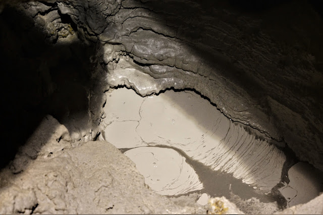 Inneren befinden sich ein unterirdischer See und eine Schlammfumarole, heiße